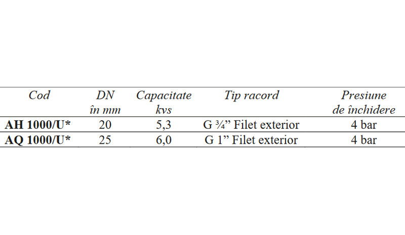 • Presiunea diferentiala/de inchidere: maximum 4 bar