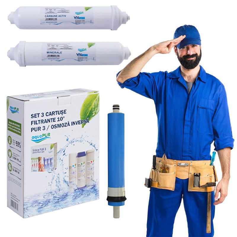 Utilizare set 3 cartuse filtrante 10" pentru PUR3 si statie osmoza inversa cu mineralizare AquaPur Valrom