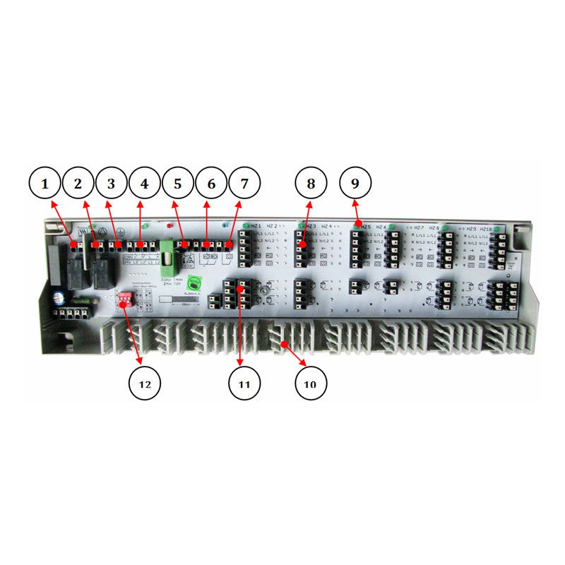 Se utilizeaza in instalatii de incalzire/racire prin pardoseala, fiind destinata interconectarii termostatelor de camera la capetele termoelectrice (actuatoare). Toate comenzile date de termostate sunt direct transmise la capetele termoelectrice (actuatoare) prin intermediul acestei unitatii. Dispune de conexiune pentru comanda pompa si cazan asigurand tensiunea de alimentare pentru aparatele conectate.