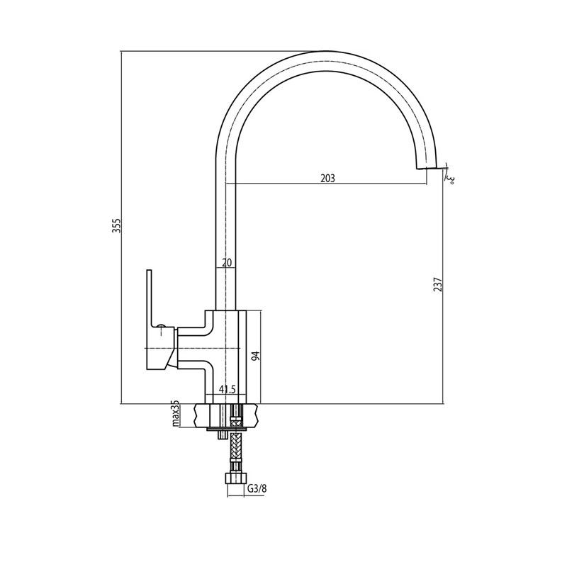 BATERIE BUCATARIE PIPA CURBATA CROM LOFT VALVEX 2454960 - Fisa tehnica EN
