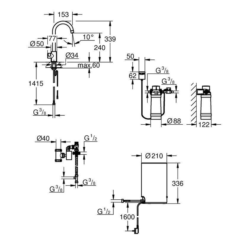 DescarcaBATERIE BUCATARIE SI BOILER MARIMEA M GROHE RED MONO 30085A01 - Date tehnice