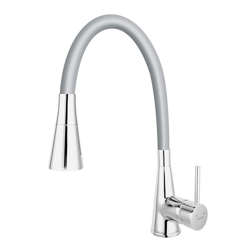 Zumba II - baterie stativa bucatarie cu pipa flexibila, gri-argintiu