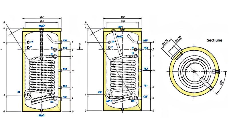 • Serpentina cu suprafata mare de schimb termic si pierdere de presiune scazuta, destinata utilizarii cu o pompa de caldura.
