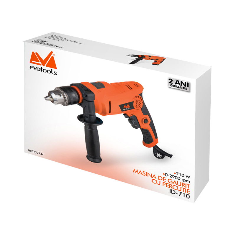 Masina de gaurit cu percutie ID 710A este potrivita tuturor proiectelor de renovare casnice si actiunilor de bricolaj.