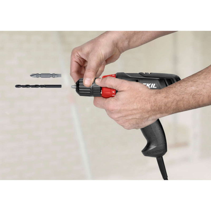 Bormasina SKIL 6220 este o bormasina compacta si usoara, cu alimentare neintrerupta. Datorita alimentarii de la retea, este totdeauna gata de lucru. Cablul de alimentare lung de 6 metri ofera o libertate marita a miscarii si este echipata cu o mandrina fara cheie, cu manseta dubla, de 10 mm, pentru schimbarea rapida si simpla a accesoriilor. Setarea dispozitivului de cuplaj 20+1 VariTorque asigura insurubarea precisa, cu cele 20 de setari, si inca o setare pentru lucrarile de gaurire. Turatia variabila ofera caracterul multilateral si asigura controlul lucrarii.
