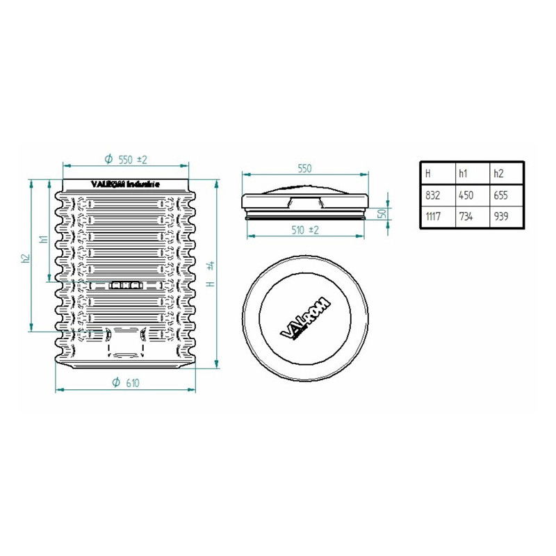 CAMIN APOMETRU ECO D.550 H=800 CU CAPAC WATERKIT - Fisa tehnica