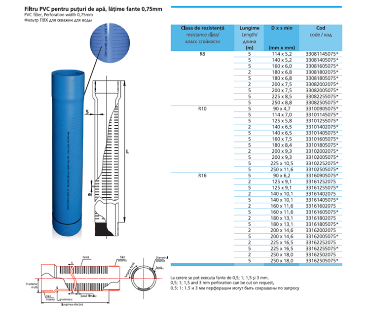 FILTRU PVC PENTRU PUT CU FANTE 0.75MM D.180X7,0MM R8 L5M SPRINGKIT. Fisier 2733