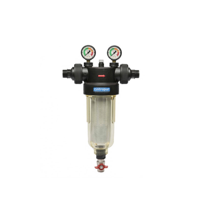 Filtru Cintropur ofera un concept de filtrare in doua etape. In primul rand, debitul de apa de la intrare este transformat direct intr-o rotire centrifugala fortand particule mai mari in jos, pe fundul vasului de unde pot fi purjate. Urmatoarea etapa de filtrare este realizata de mansonul filtrant, disponibil in diferite variante de filtrare de la 5 pana la 300μ.NW280, NW340, NW400 sunt modele ale caror manometre sunt umplute cu glicerina.Fabricate integral din material sintetic de primă calitate, filtrele Cintropur sunt potrivite perfect pentru domeniul alimentar și filtrarea apei potabile.