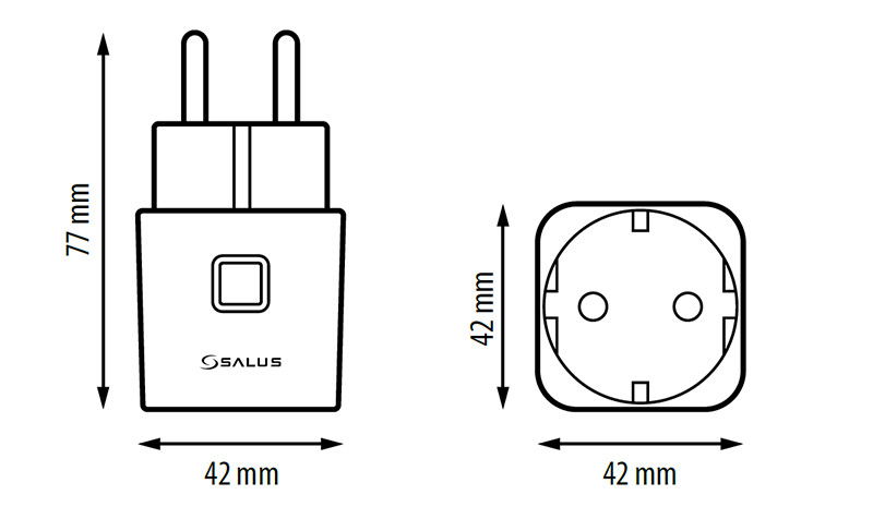 Priza inteligenta este conectata direct la priza electrica (ca o extensie) - ofera posibilitatea de a controla dispozitivul conectat la acesta. Trebuie utilizata impreuna cu gateway-ul universal UGE600 si cu aplicatia SALUS Smart Home.
