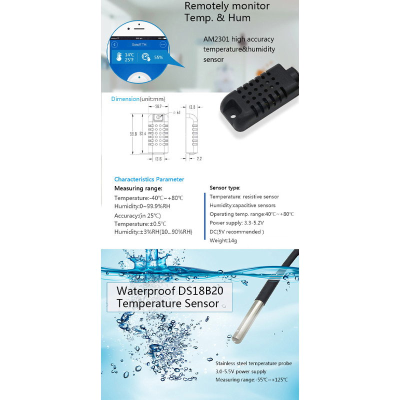 SENZOR DE TEMPERATURA REZISTENT LA APA PENTRU TH DS18B20 SONOFF - Date tehnice EN