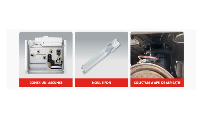- Noul sifon usor accesibil si inspectabil