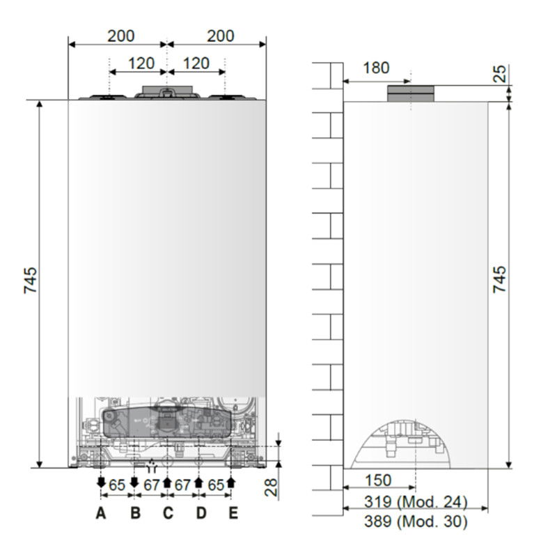 - Presiunea de alimentare cu gaz metan (G20): 20 mbar