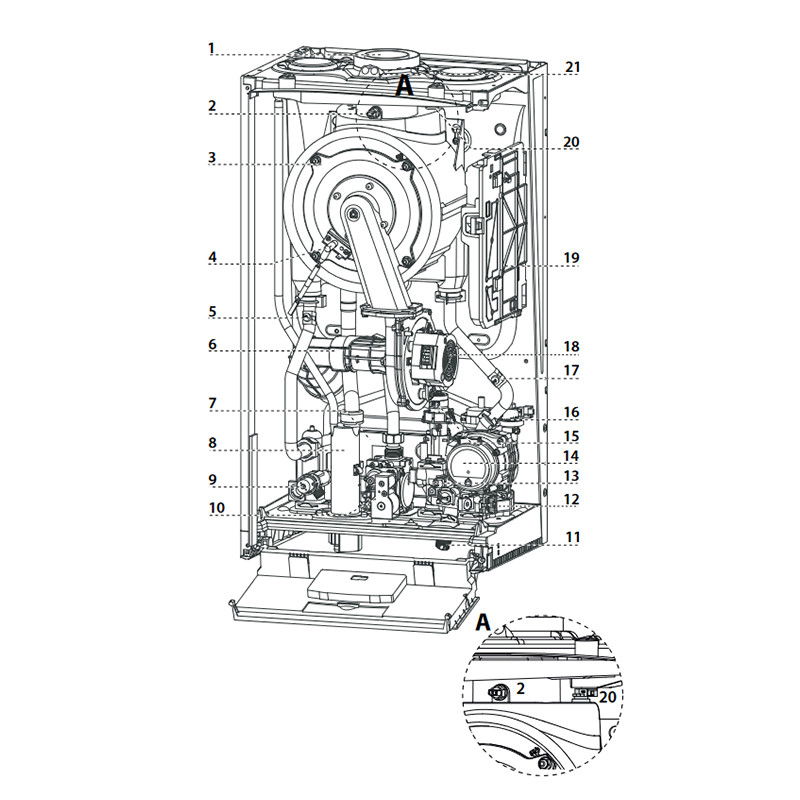 • Putere termica utila max/min incalzire (50/30°C): 21.0 / 4.9 kW