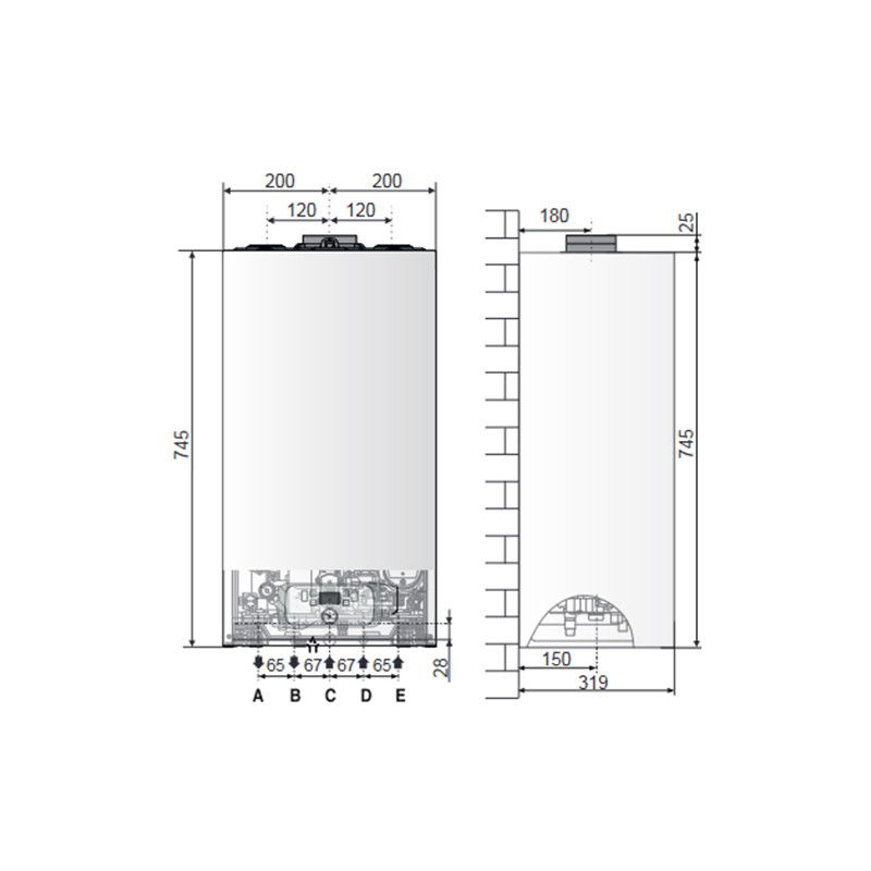 • Temperatura maxima a gazelor de ardere la 80/60°C: 65°C