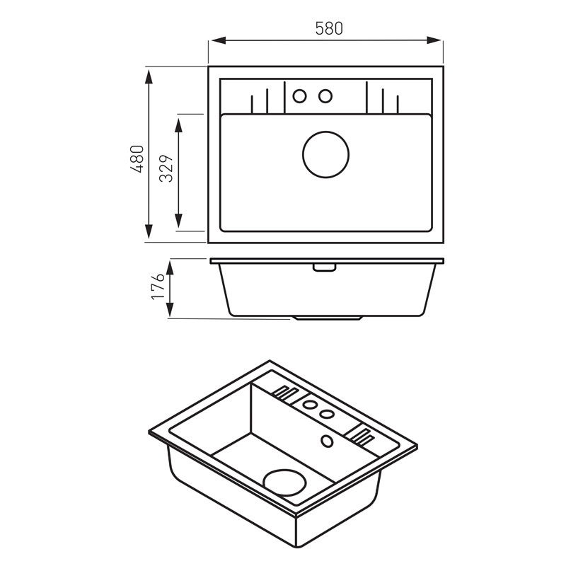 Ferro CHIUVETA GRANIT FERRO DRGM1/48/58BA CU O CUVA 58X48CM GRAFIT MEZZO NEAGRA