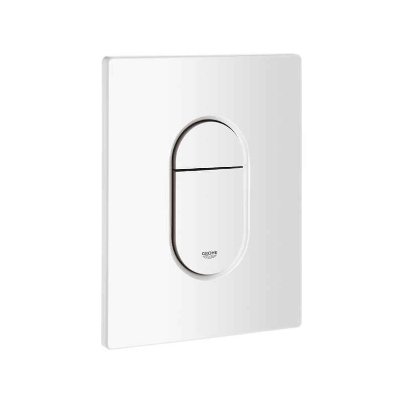 Clapeta de actionare Arena Cosmopolitan 38844SH0 este recomandata pentru actionare cu dubla spalare sau de tipul start & stop. Este prevazuta pentru ventil de evacuare pneumatic AV1, montajul clapetei realizandu-se pe verticala. Clapeta este fabricata din ABS si are finisaj alb. Tehnologia Grohe EcoJoy reduce consumul de apa cu pana 50%. Sistemul de actionare dublu ofera doua butoane, permitandu-va sa selectati un volum de spalare, fie de 3 L sau de 6 L. Cu ajutorul butonului mic de pe placa de actionare se poate opri fluxul de apa.