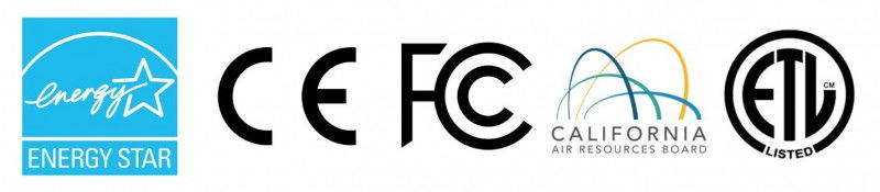 Certificarile presitigioase Energy Star, CARB, FCC, CE si listarea ETL atesta faptul ca acest purificator de aer indeplineste cerintele stricte si este considerat eficient energetic si asigurat de calitate.