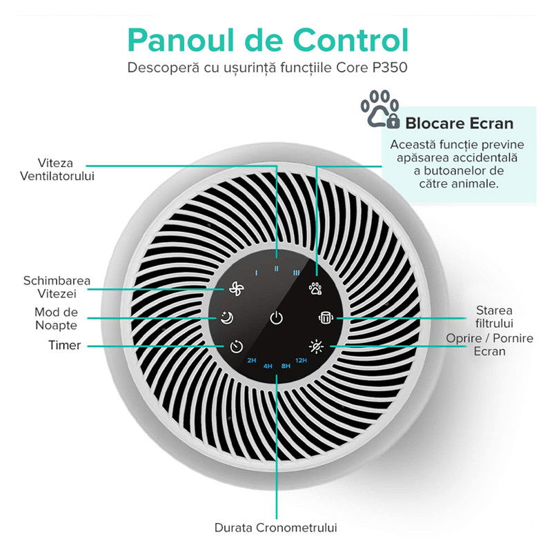Cadoul perfect pentru familiile cu animale de companie! Acest purificator de aer Levoit Core P350 creeaza in casa o atmosfera sanatoasa pentru tine si animalele de companie iubite, precum caini, pisici, iepurasi si chiar reptile.