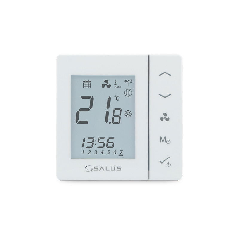Dispozitiv multifunctional conceput pentru a controla ventiloconvectoare cu 2 sau 4 tevi, incalzitoare de sant sau incalzitoare de apa, care au un ventilator incorporat. Termostatul controleaza ventilatorul si supapele pentru a mentine temperatura setata in incapere.