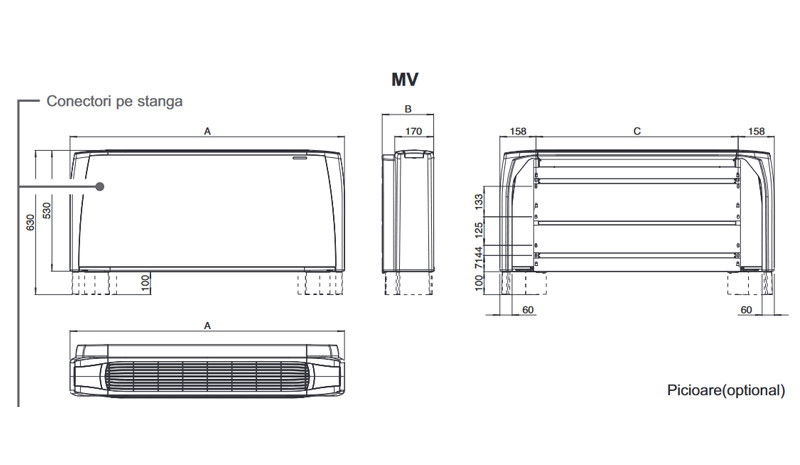 Fabricate cu coltare din plastic rezistent si panouri frontale din tabla galvanizata, prevopsita. Grila superioara din plastic are fante fixe si este reversibila, pentru a facilita distributia aerului in doua directii diferite.