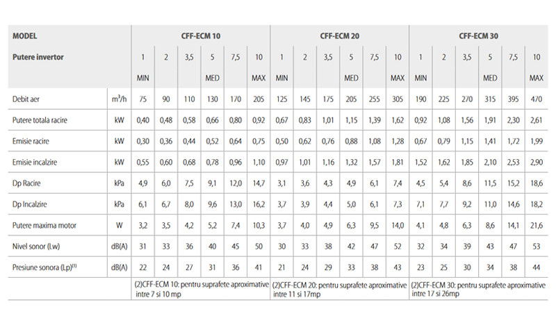 - Emisie racire: 0.67/1.41/1.99 kW (min/med/max)