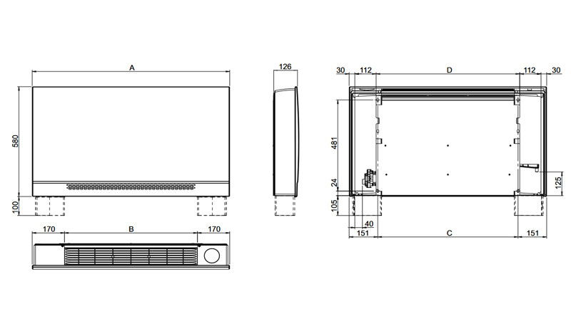 Ventilo-convectorul Sabiana Carisma Whisper este disponibil in 5 dimensiuni, de la 75 pana la 7645 m², si doua versiuni, de perete si incastrat, cu baterie de schimb de caldura pe 2 randuri.