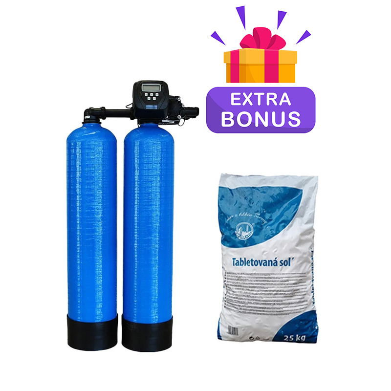 Sistemul de dedurizare asigura permanent si eficient dedurizarea apei, prin functionarea alternativa a celor doua coloane realizate special din material anticoroziv, rasina poliesterica ranforsata cu fibra de sticla.Astfel puteti avea apa dedurizata 24H/24H. Automatizarea este efectuata de programatorul electronic computerizat, care comanda cele 2 vane sa execute regenerarea masei cationice in functie de volumul de apa consumat, masurat cu ajutorul debitmetrului cu emitator de impulsuri, eficientizand astfel consumul de solutie salina.
