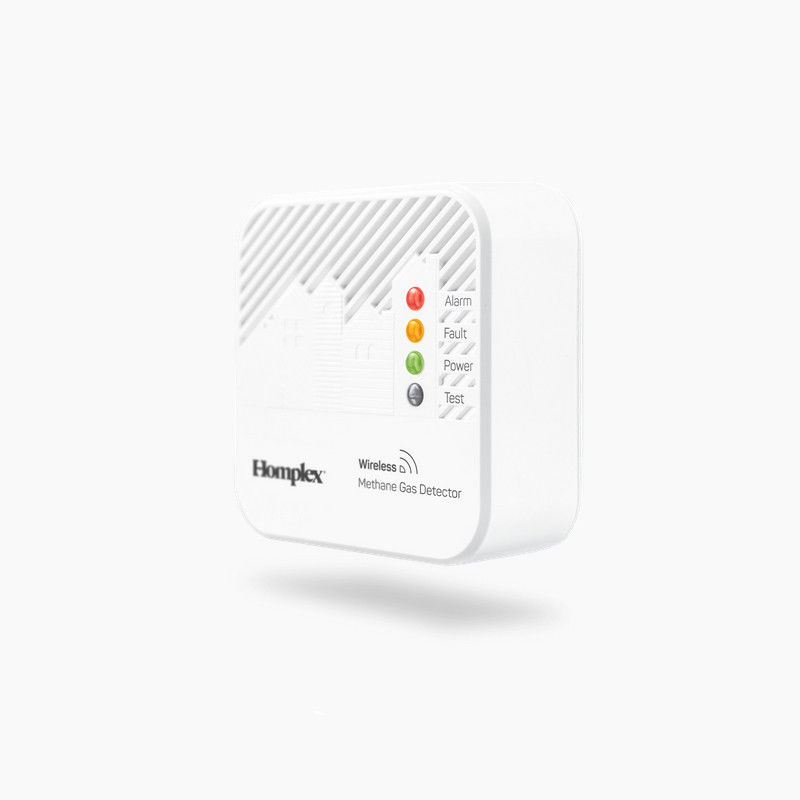 Detectorul de gaz fara fir (wireless) a fost conceput pentru a elimina disconfortul creat de gaurirea peretilor, o actiune necesara pentru traseul de cablu catre electrovalva. Permite o instalare si activare imediata prin intermediul placii de montaj si introducerea stecherului in priza. Detectorul cu radiofrecventa impreuna cu Finderul Homplex HD200 RF permite conectarea foarte rapida si eficienta a unui numar ridicat de apartamente. Semnalul de alarma este transmis prin unde radio pe o distanta intre 50 si 300 m. Datorita senzorului calibrat cu atentie, riscul aparitiei alarmelor false este redus.