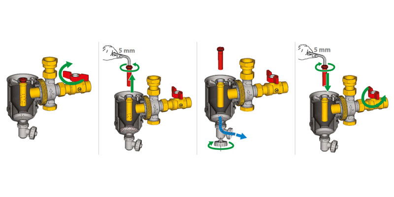 Separatorul magnetic de impuritati Giacomini R146C are rolul de a separa si elimina resturile din circuitele hidraulice ale sistemelor de incalzire si racire. Impuritatile sunt separate prin actiunea combinata a apei centrifugate, un magnet si un filtru de metal. Acestea pot fi apoi eliminate prin orificiul de golire. Separatorul magnetic R146C permite instalarea reglabila sub centrala in unghi drept, pe orizontala sau verticala.