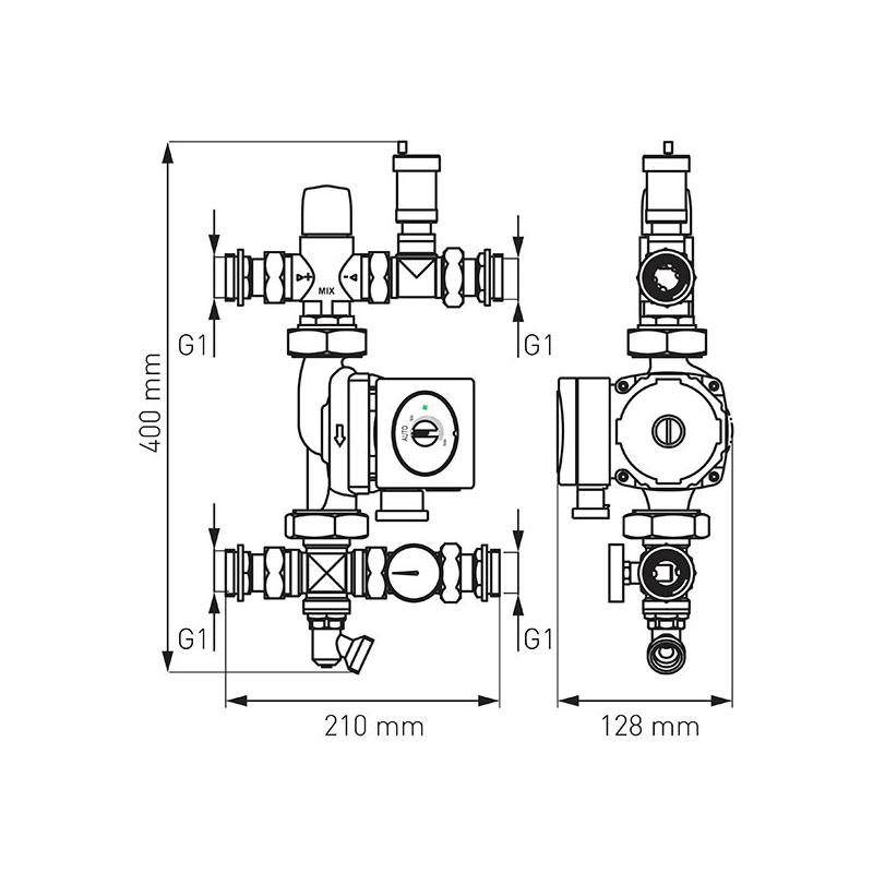 Grupul de amestec cu doua functii serveste la scaderea si mentinerea temperaturii dorite a lichidului de incalzire in sistemul de incalzire in pardoseala si la conectarea acestuia la o instalatie de radiatoare cu o temperatura inalta.