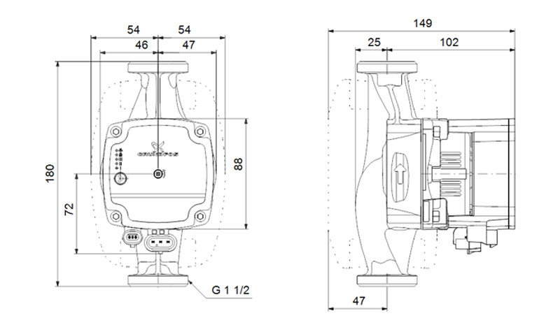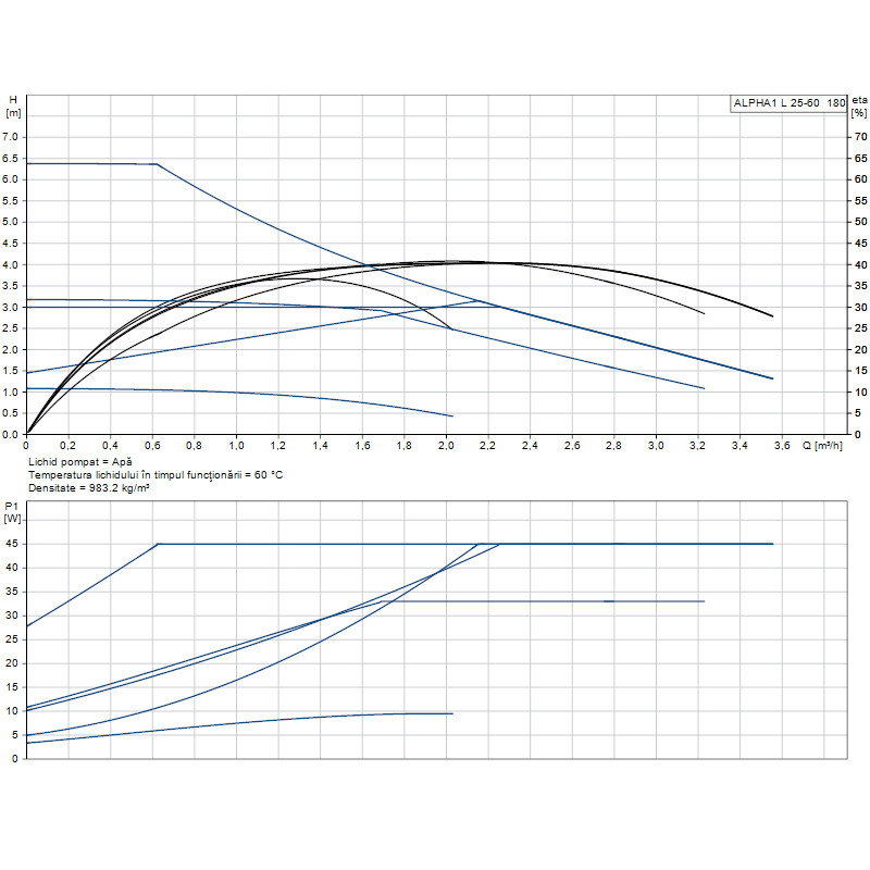 Grundfos ALPHA1 L 25-60 180 este o pompa de circulatie de inalta eficienta cu motor cu magnet permanent (tehnologie ECM).