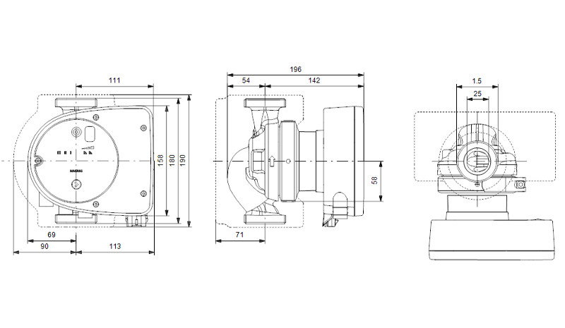 MAGNA1 este o pompa monofazata si se caracterizeaza prin faptul ca controlerul si panoul de comanda sunt integrate in cutia de control. Carcasa pompei este disponibila atat in versiuni din fonta, cat si din otel inoxidabil. Cutia rotor compozita este armata cu fibra de carbon, placa portanta si placarea rotorului sunt din otel inoxidabil, iar carcasa statorului este din aluminiu. Electronica de putere este racita cu aer.