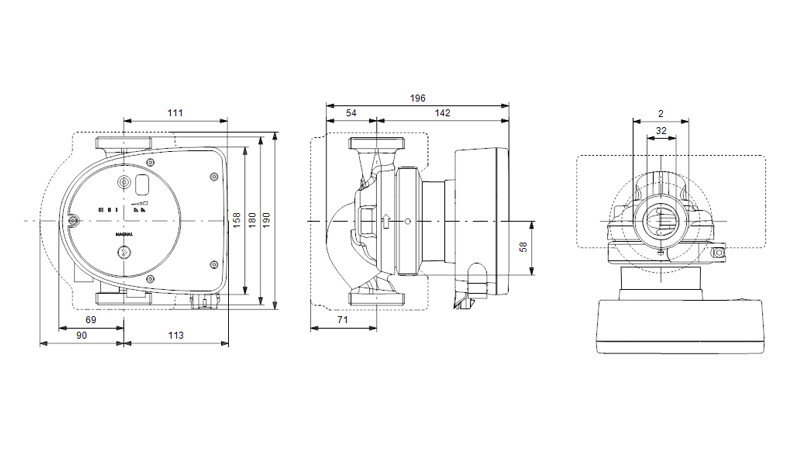 MAGNA1 este o pompa monofazata si se caracterizeaza prin faptul ca controlerul si panoul de comanda sunt integrate in cutia de control. Carcasa pompei este disponibila atat in versiuni din fonta, cat si din otel inoxidabil. Cutia rotor compozita este armata cu fibra de carbon, placa portanta si placarea rotorului sunt din otel inoxidabil, iar carcasa statorului este din aluminiu. Electronica de putere este racita cu aer.