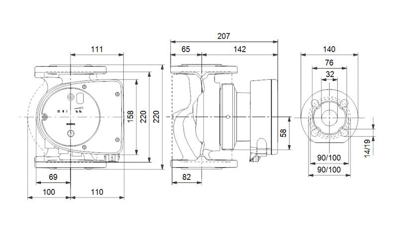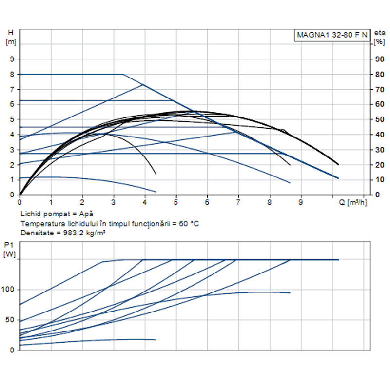 POMPA RECIRCULARE GRUNDFOS MAGNA1 32-80 F N 220 CORP INOX 99221277 - Fisa tehnica