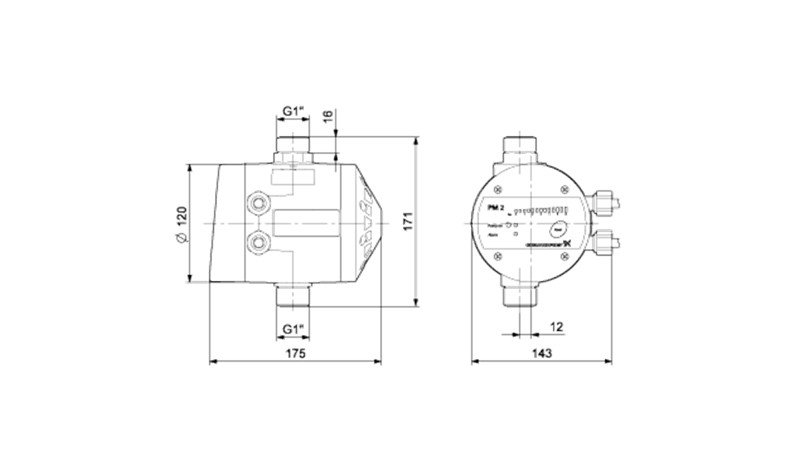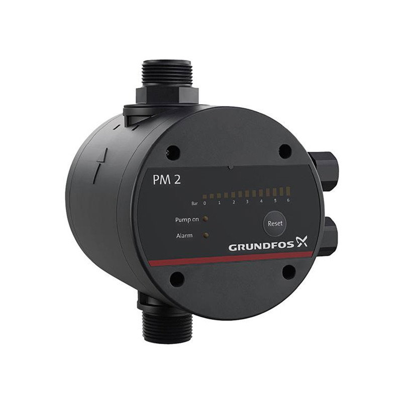 Dispozitivul de control al presiunii Grundfos PM2 este un dispozitiv de control al presiunii electronic, in principal, pentru controlul pompelor Grundfos, dar poate fi folosit si pentru alte pompe de alimentare cu apa.