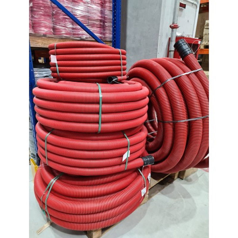 Copexul riflat subteran diametru 63mm este un tub flexibil din PVC, rezistent la socuri si la umiditate, utilizat pentru protectia cablurilor electrice in instalatiile subterane de joasa tensiune. Acest tip de copex are un diametru interior de 63mm, ceea ce il face potrivit pentru instalarea unor cantitati mari de cabluri electrice. De asemenea, are o grosime a peretelui de 3mm, ceea ce il face rezistent la deteriorare mecanica.