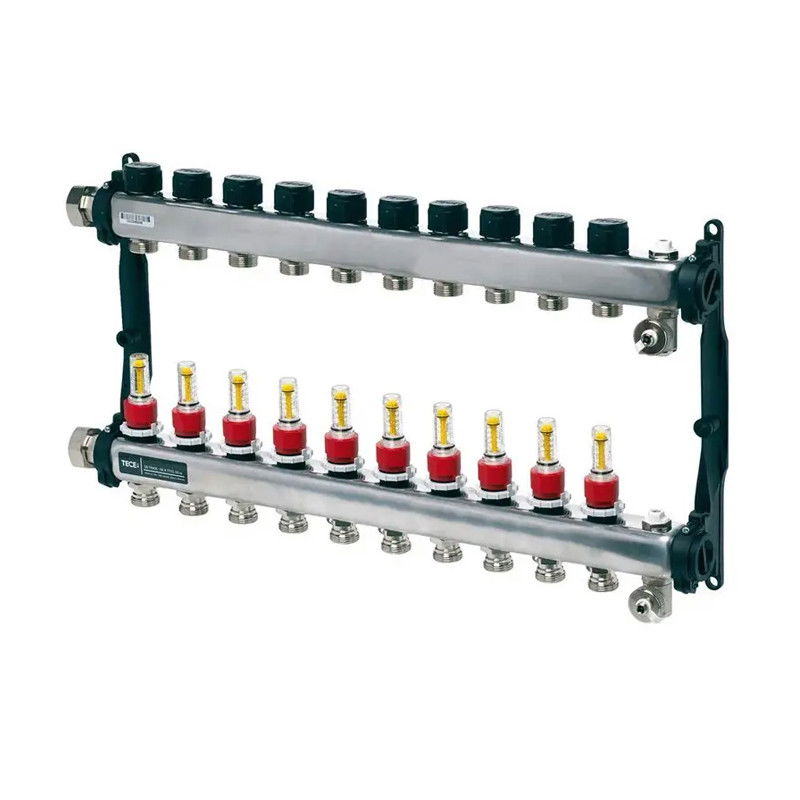 Distribuitorul de incalzire prin pardoseala TECEfloor 77310010 este un produs din otel inoxidabil, cu filet interior, cu 10 cai si diametrul de 1". Este destinat pentru utilizarea in sisteme de incalzire prin pardoseala. Acesta se monteaza pe perete, folosind suporturile de sustinere incluse. Iesirile distribuitoarelor sunt dispuse variabil, astfel incat sa se poata adapta la orice configuratie de incalzire prin pardoseala.