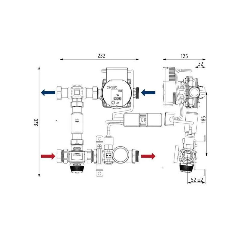 Grup de pompare si amestec folosit pentru a mentine o temperatura fixa prestabilita intr-un sistem de incalzire in pardoseala.