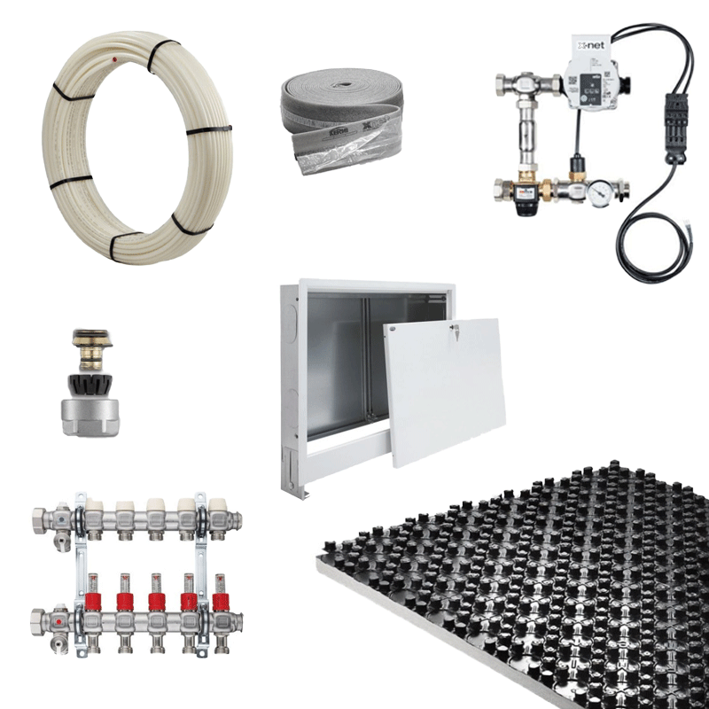 Grup de pompare si amestec folosit pentru a mentine o temperatura fixa prestabilita intr-un sistem de incalzire in pardoseala.