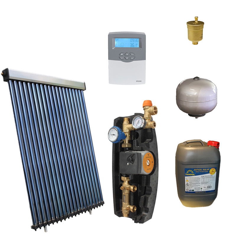 In functie de nevoi se vor atasa acestor pachete teava flexibila de inox izolat, fitingurile si sistemele de fixare/inclinare ale panourilor solare.