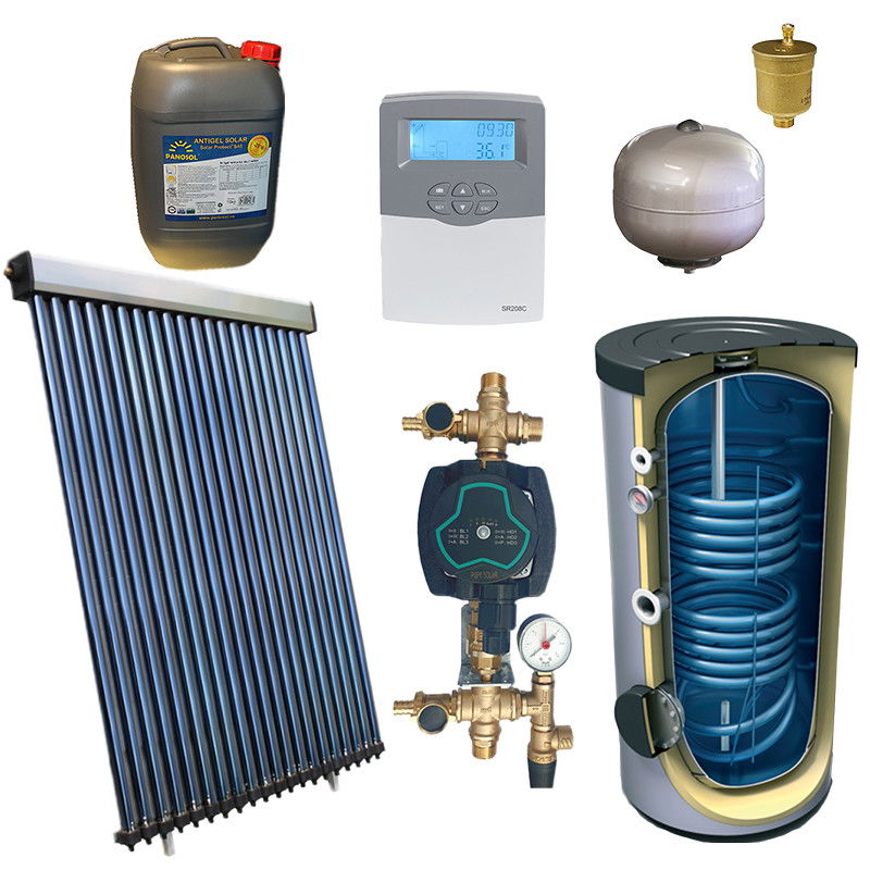 In functie de nevoi se vor atasa acestor pachete teava flexibila de inox izolat, fitingurile si sistemele de fixare/inclinare ale panourilor solare.