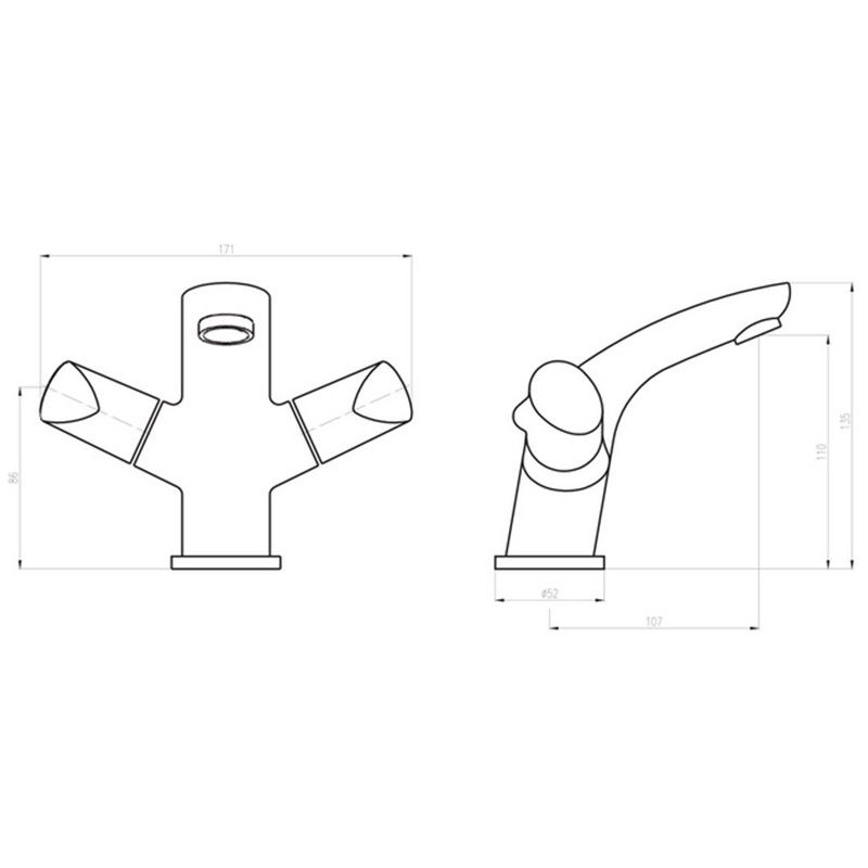 Baterie sanitara pentru lavoar (chiuveta baie) CasaBlanca Estello, cu robinete individuale pentru apa calda si rece (dubla comanda), teava fixa.