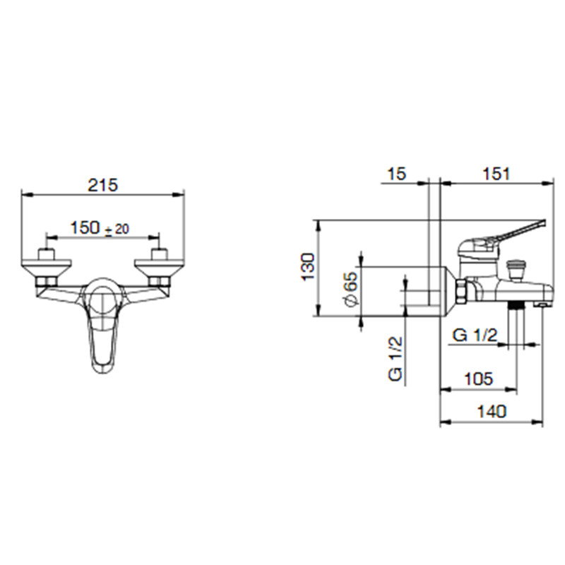 Mixer de baie cu o singura maneta, cu dus antiscara in ABS, flex 150 cm crom si articulat ABS