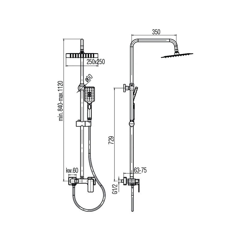 Coloana de dus Valvex Loft 2455750 negru mat, este alcatuita dintr-o baterie dus monocomanda, furtun dus, palarie de dus efect ploaie, dimensiune 250x250mm, si o para de dus mobila 80 mm cu 3 functii: normal stream, massage stream si mixed stream.