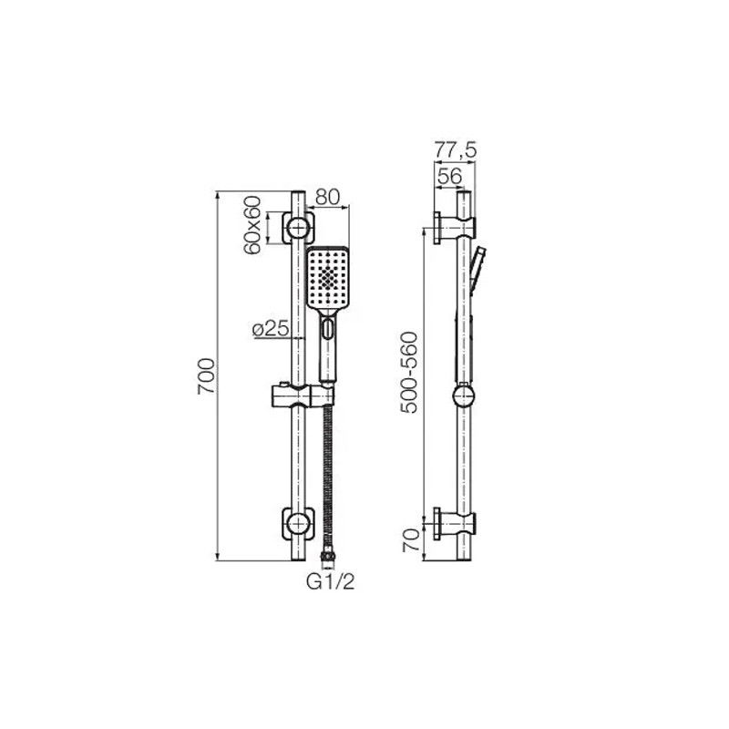 Sitemul de dus Loft Black 2432960 de la Valvex, are in componenta sa bara suport cu montaj pe perete ajustabila, furtun de dus 1.5m si para dus mobila cu dimensiune 80 mm, cu 3 functii: normal stream, massage stream si mixed stream.