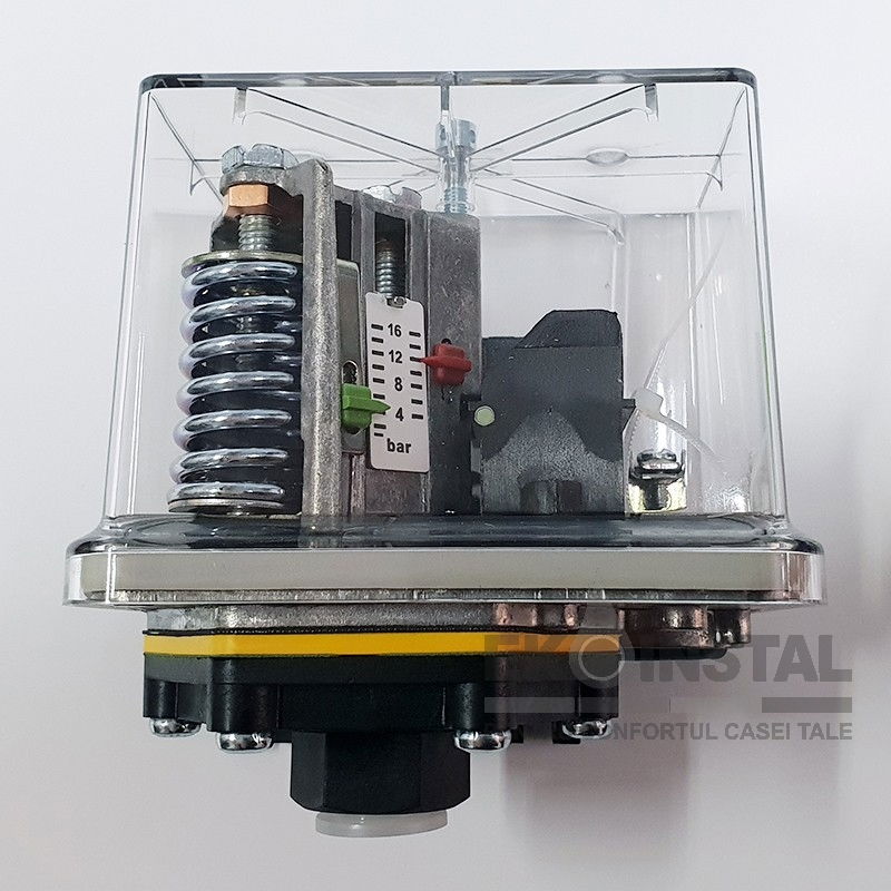 Presostatul are un domeniu de reglaj cuprins între 1 și 16 bar, permițând ajustarea presiunii în funcție de cerințele aplicației.