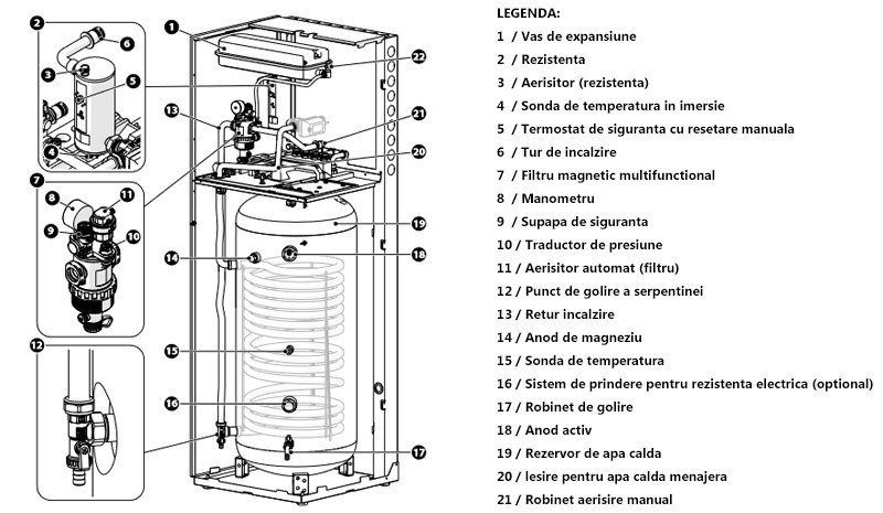- Rezervor Buffer 15 l di vas de expansiune incorporabil(optional)