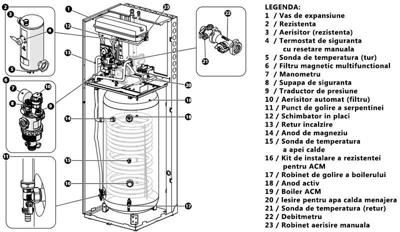 - Vas de expansiune A.C.M. incorporabil(optional)