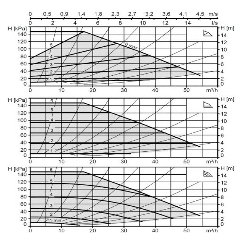 • Trei moduri diferite de reglare: presiune diferentiala proportionala, presiune diferentiala constanta si turatie constanta