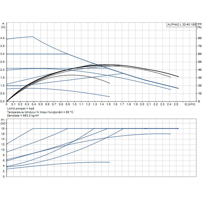ALPHA2 L este o pompa de circulatie de inalta eficienta pentru indeplinirea functionalitatilor de baza in sistemele de incalzire. Pompa dispune de trei curbe de turatie fixa, doua curbe de presiune proportionala si doua curbe de presiune constanta.